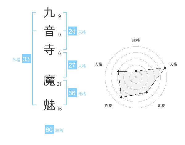 九音寺 魔魅さんの総格は60画の1点!