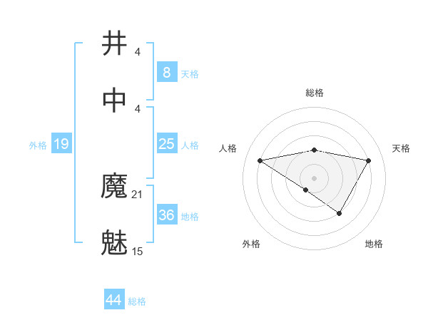 井中 魔魅さんの天格は8画の4点!