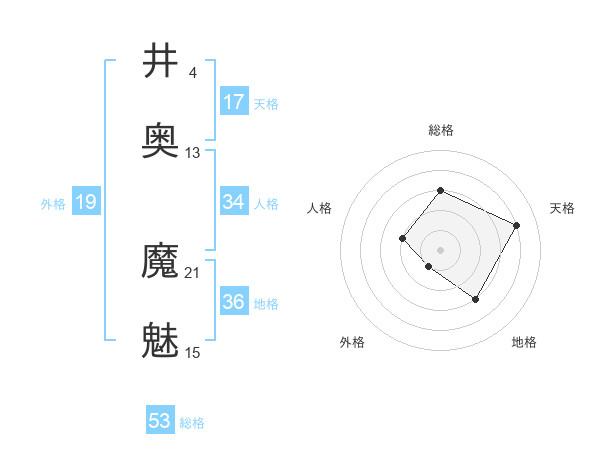 井奥 魔魅さんの総格は53画の3点!
