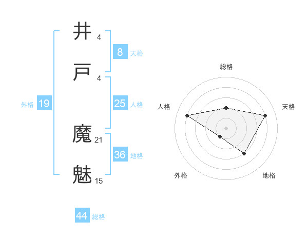 井戸 魔魅さんの総格は44画の2点!