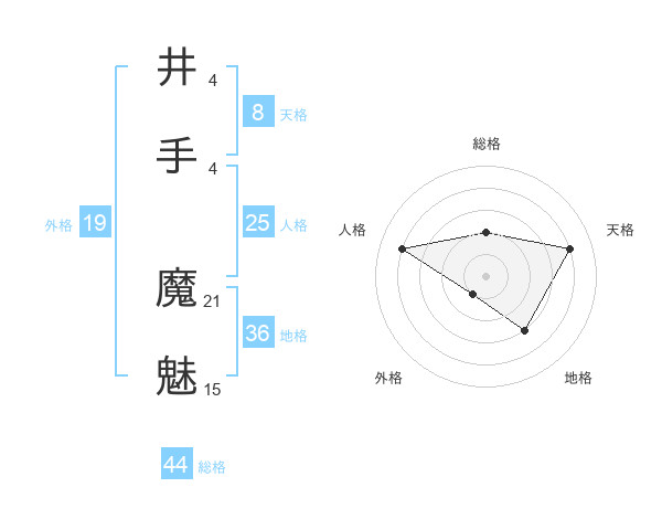 井手 魔魅さんの総格は44画の2点!