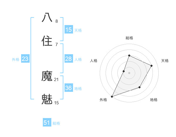 八住 魔魅さんを姓名の画数から五運を鑑定