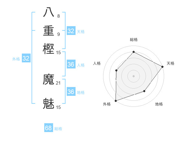 八重樫 魔魅さんを姓名の画数から五運を鑑定