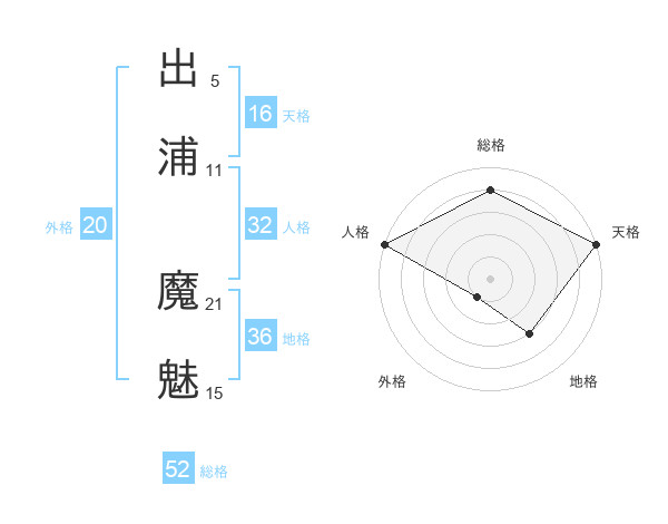 出浦 魔魅さんの総格は52画の4点!