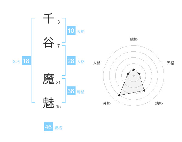 千谷 魔魅さんを姓名の画数から五運を鑑定