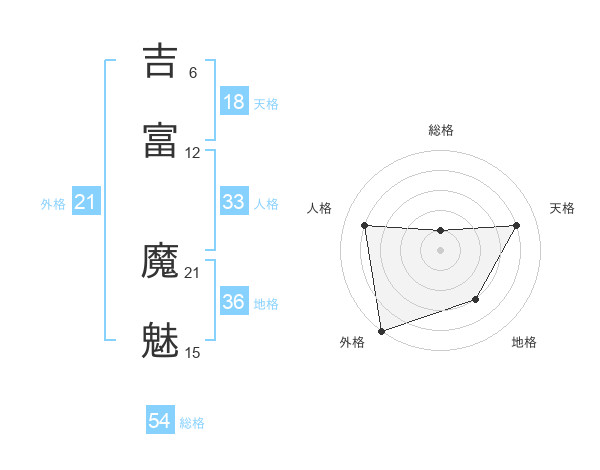 吉富 魔魅さんを姓名の画数から五運を鑑定