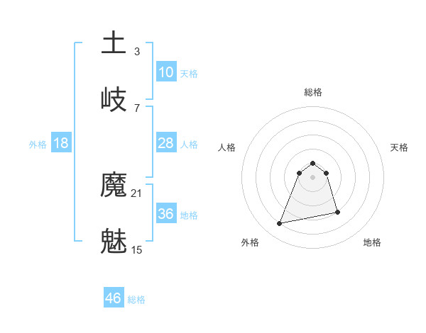 土岐 魔魅さんの総格は46画の1点!