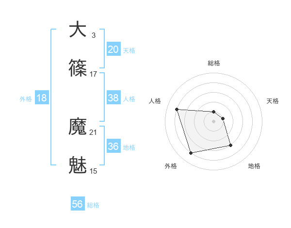 大篠 魔魅さんの天格は20画の1点!