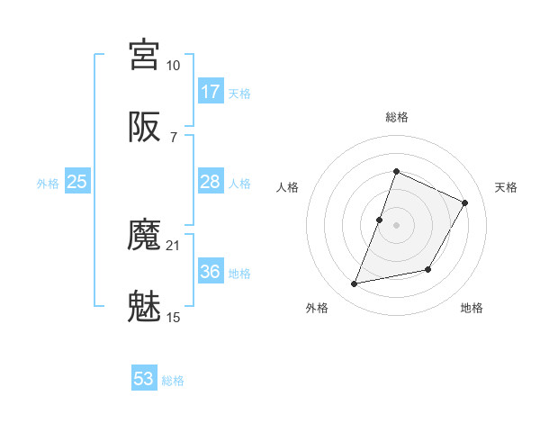宮阪 魔魅さんを姓名の画数から五運を鑑定