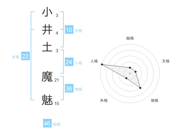 小井土 魔魅さんの総格は46画の1点!