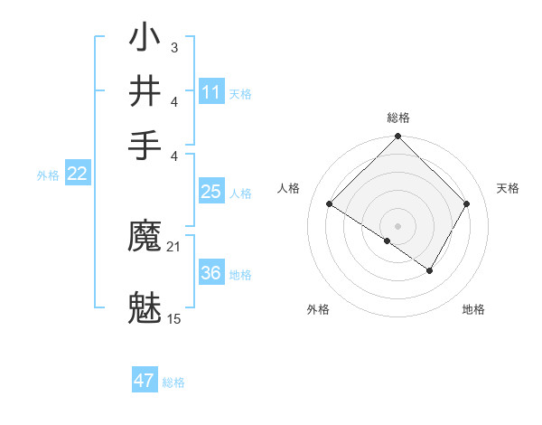 小井手 魔魅さんの総格は47画の5点!