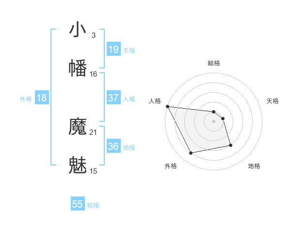 小幡 魔魅さんの総格は55画の1点!