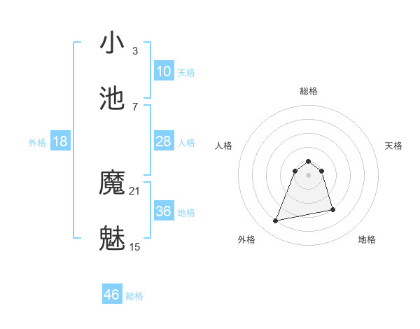 小池 魔魅さんを姓名の画数から五運を鑑定