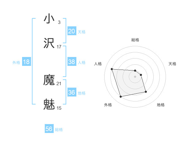 小沢 魔魅さんを姓名の画数から五運を鑑定