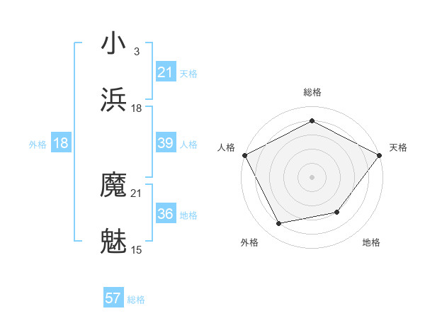 小浜 魔魅さんの総格は57画の4点!