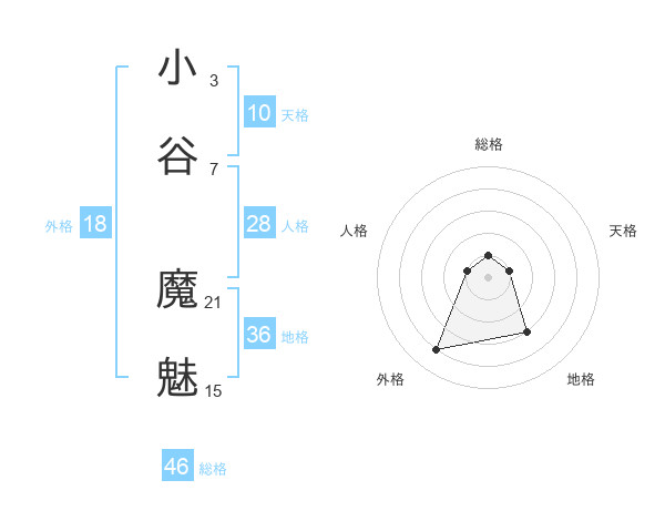 小谷 魔魅さんの総格は46画の1点!