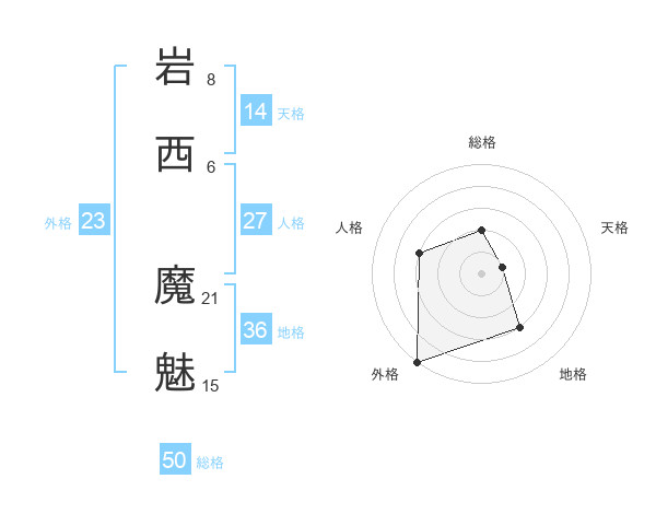 岩西 魔魅さんを姓名の画数から五運を鑑定