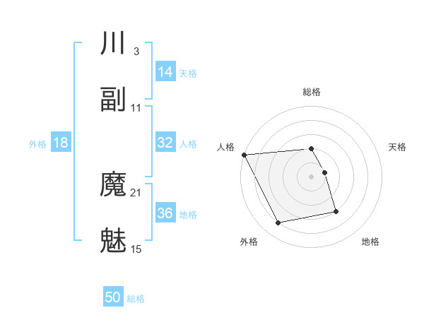 川副 魔魅さんの総格は50画の2点!