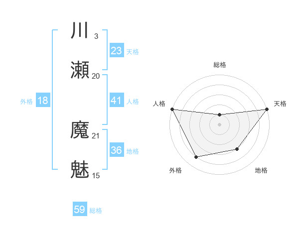 川瀬 魔魅さんの総格は59画の1点!