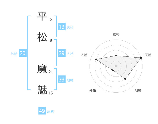 平松 魔魅さんの総格は49画の2点!