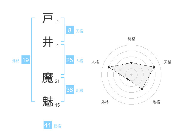 戸井 魔魅さんを姓名の画数から五運を鑑定