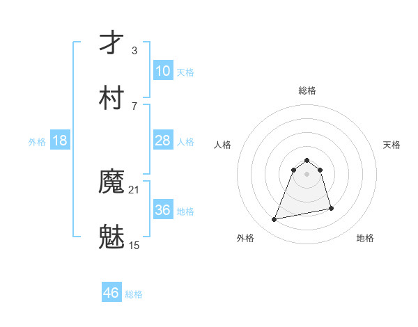 才村 魔魅さんの総格は46画の1点!