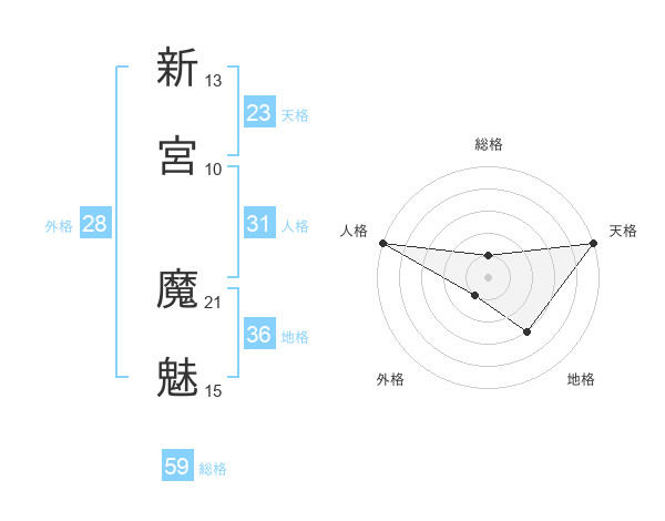 新宮 魔魅さんの総格は59画の1点!