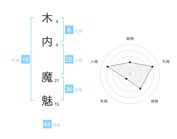 木内 魔魅さんを姓名の画数から五運を鑑定