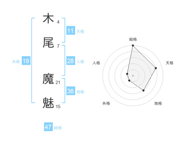 木尾 魔魅さんを姓名の画数から五運を鑑定