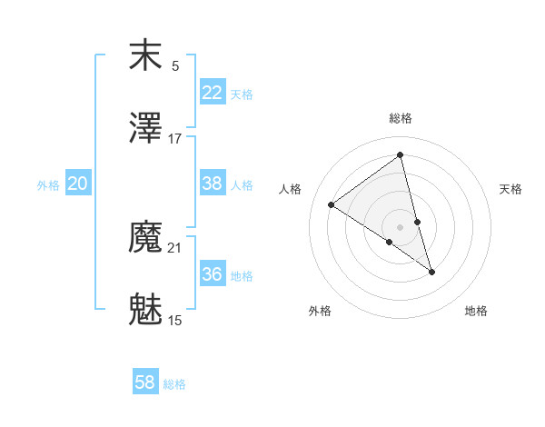 末澤 魔魅さんを姓名の画数から五運を鑑定