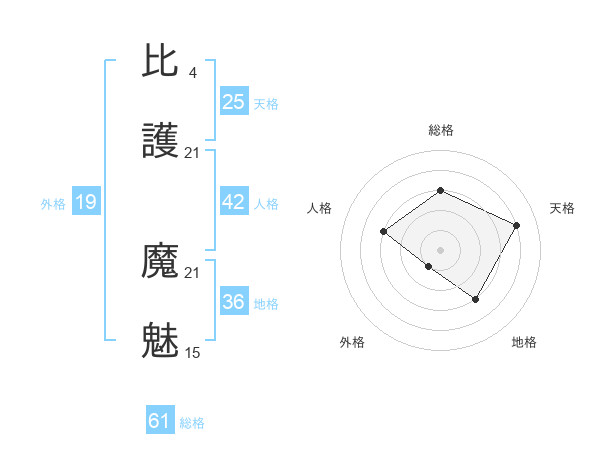 比護 魔魅さんの外格は19画の1点!