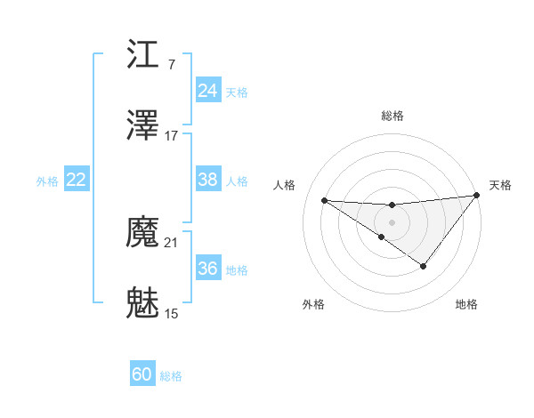 江澤 魔魅さんの総格は60画の1点!