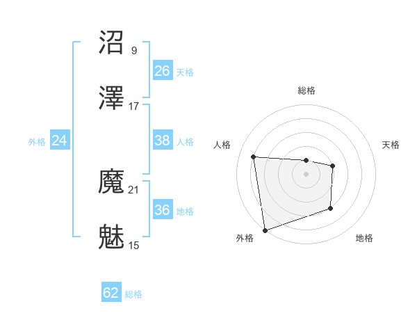 沼澤 魔魅さんの外格は24画の5点!