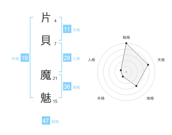 片貝 魔魅さんの総格は47画の5点!