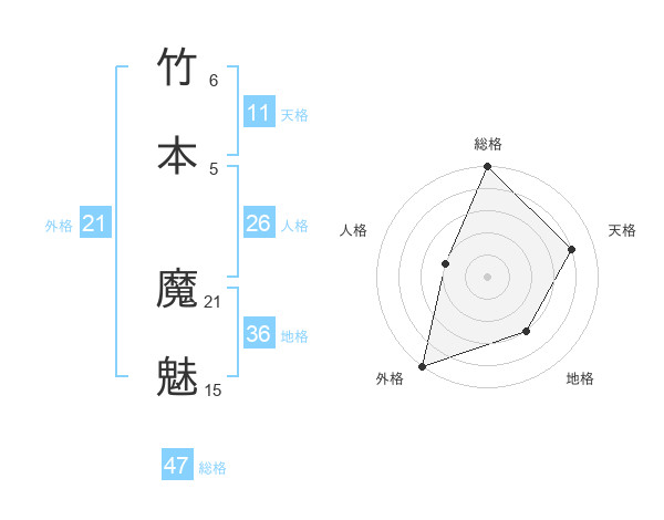竹本 魔魅さんを姓名の画数から五運を鑑定