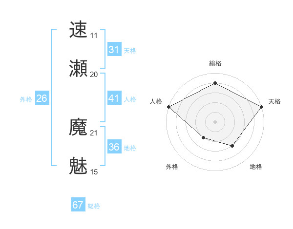 速瀬 魔魅さんを姓名の画数から五運を鑑定