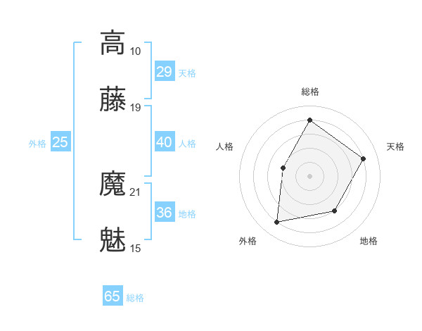 高藤 魔魅さんの総格は65画の4点!