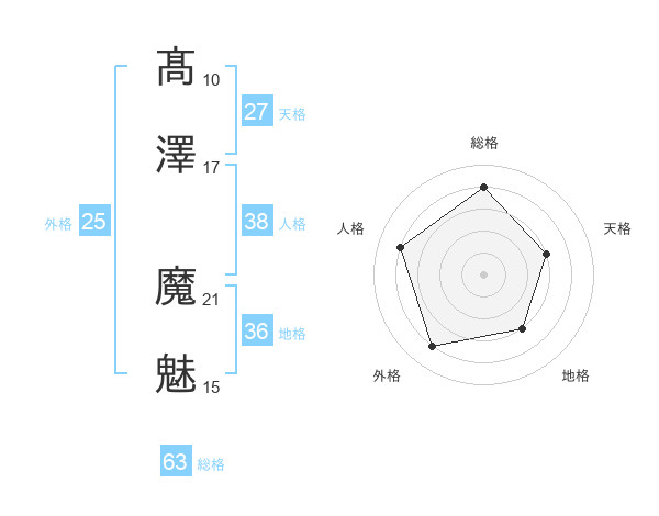 髙澤 魔魅さんを姓名の画数から五運を鑑定