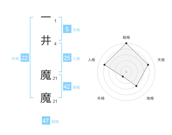 一井 魔魔さんを姓名の画数から五運を鑑定