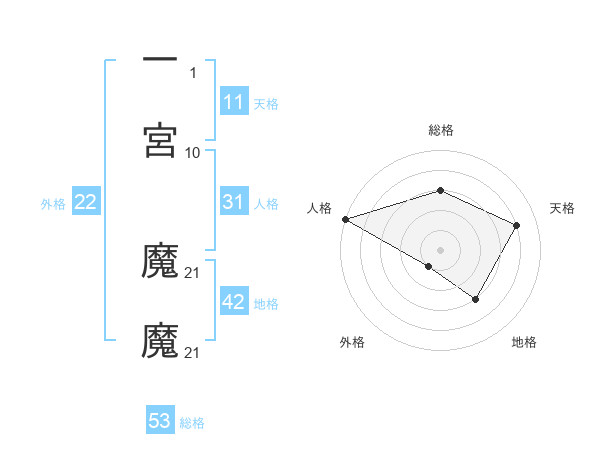 一宮 魔魔さんを姓名の画数から五運を鑑定
