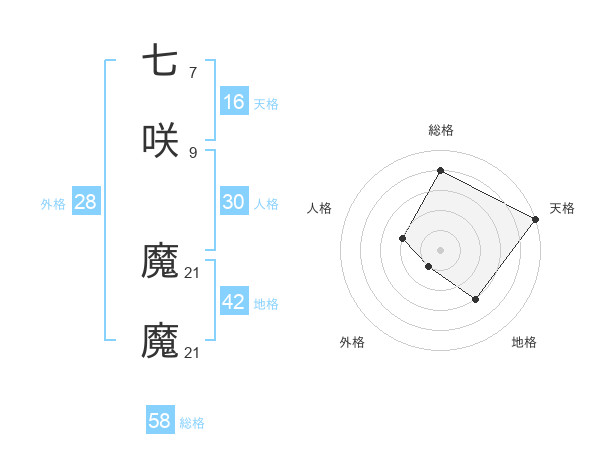 七咲 魔魔さんを姓名の画数から五運を鑑定