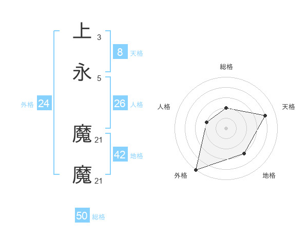 上永 魔魔さんの総格は50画の2点!