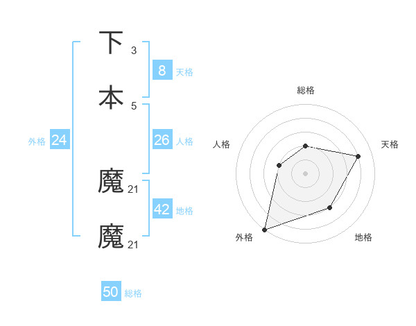 下本 魔魔さんを姓名の画数から五運を鑑定