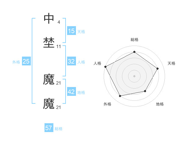 中埜 魔魔さんの総格は57画の4点!