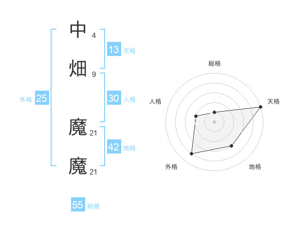 中畑 魔魔さんを姓名の画数から五運を鑑定