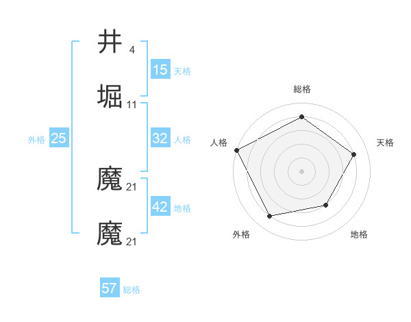 井堀 魔魔さんを姓名の画数から五運を鑑定