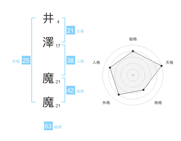 井澤 魔魔さんの天格は21画の5点!