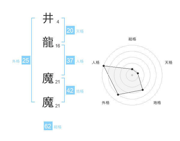 井龍 魔魔さんの天格は20画の1点!