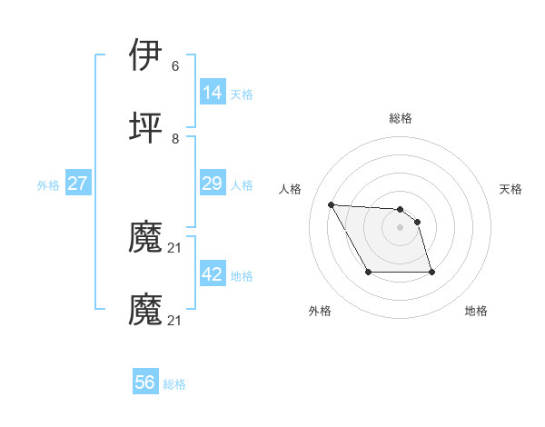 伊坪 魔魔さんを姓名の画数から五運を鑑定