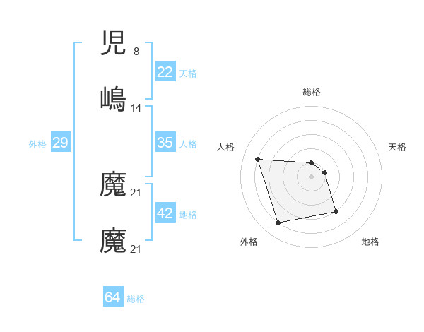 児嶋 魔魔さんの天格は22画の1点!